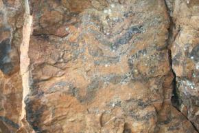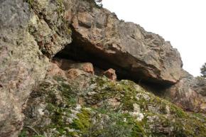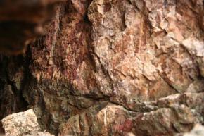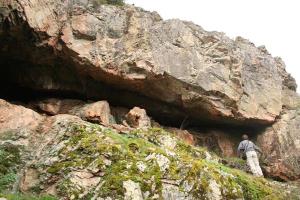 Hay muchas manchas en la piedra, algunas demasiado casuales. Cuevas y abrigos mas o menos pequeños, hasta topar con la Cueva Tapada. Un inmenso boquete abierto en la peña.