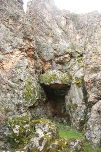Como en el centro de este entramado encontramos una gran piedra «como caída» en forma de puerta que da acceso a una grieta que entra en la entraña de la tierra. Entramos varios metros, pero de nuevo nos entramos cegado el paso.