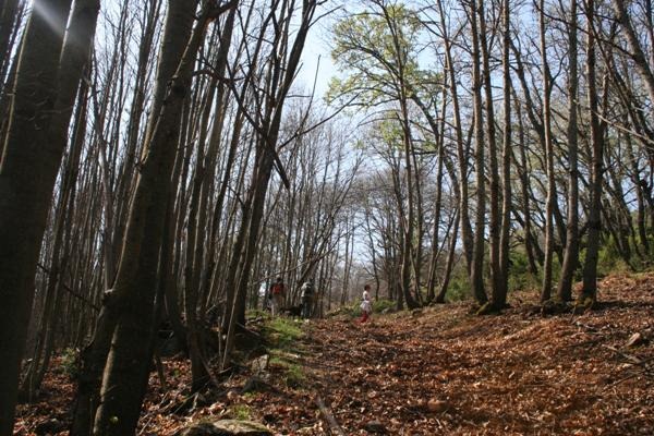 Cuando nos vamos enfrentando la último tramo, el de la pendiente, la vegetación empieza a cambiar. Ahora el camino va a pasar por un castañar enorme.