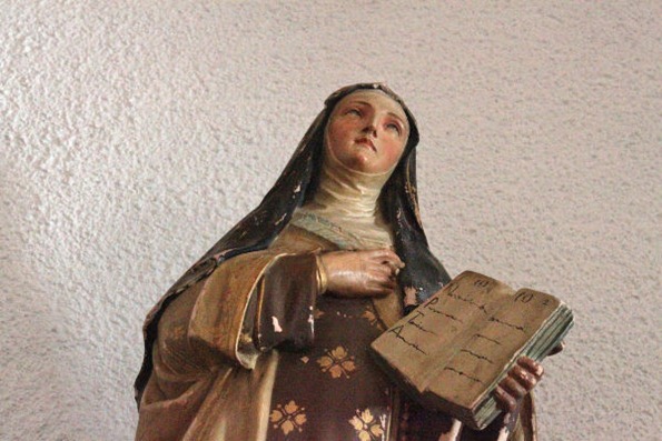 La Virgen del Rosario y Santa Teresa de Jesús custodian el Prebiterio siendo las únicas imágenes que hay en este privilegiado lugar. En el arco que lo enmarca tenemos una talla del Corazon de Jesús y otra de San Blas, uno a cada lado.