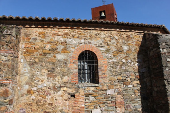 El metal combina a la perfección con la cuarcita, piedra local, con la que están levantados los muros de la iglesia. Es pequeña, la forma original era un rectángulo al que el en siglo XVI se le añade un ábside poligonal en uno de sus extremos.