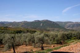 Por momentos solo los colores del suelo lo diferencia de paisajes de Jaen o Granada. Todo se aprovecha y en pocos e inaccesibles parajes se mantienen retazos del bosque o matorral autóctono.