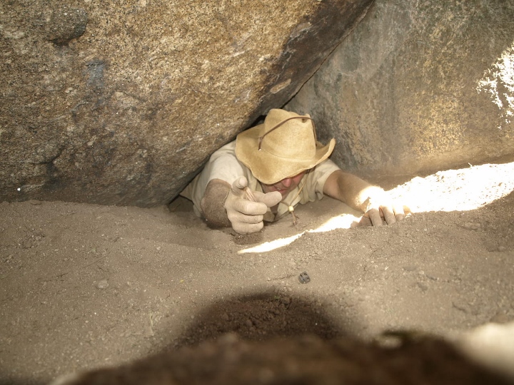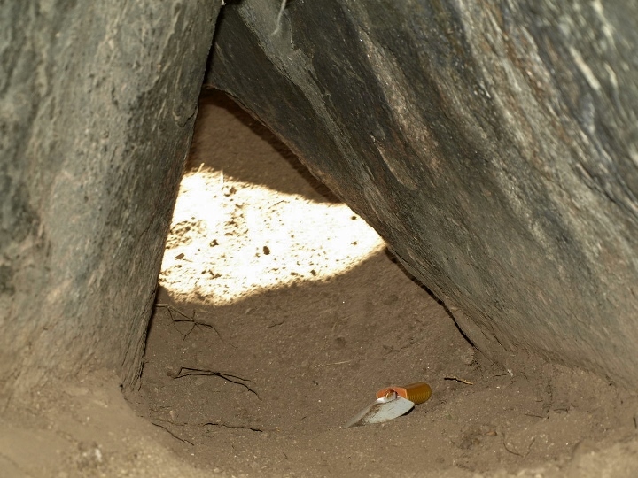 Este angosto pasadizo desemboca en una estancia de unos 8 mtrs de larga. Ahí se ve en una foto del interior de la cueva. En ella encontramos sus arañas y murciélagos, como es pertinente.