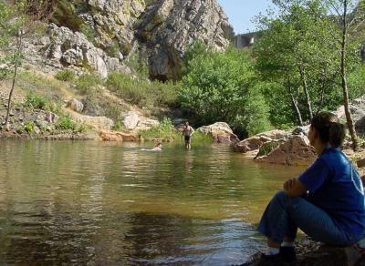 Las fuentes manan lo suficiente para satisfacer las necesidades de muchos pueblos cercanos y aún queda para embalses y piscinas naturales. Estamos en el umbral de la España húmeda, mas al sur, sólo los grandes ríos mantendrán sus corrientes vivas todo el año. El pantano del Cancho del Fresno es de postalita, entre sierras, asegura caudal para charcos y piscinas.