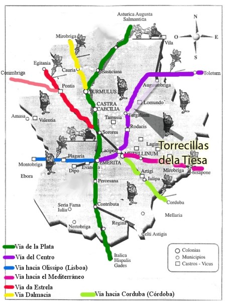 Lo que salió fué un famoso camino romano: el Anónimo de Ravena, del siglo IV, donde se cita a Trujillo como Turcalion en el camino de Mérida a Zaragoza por Toledo: Emérita Augusta, Lacipea, Rodacis, Turcalion, Lomundo, Augustobriga, Lebuna y Toletum.